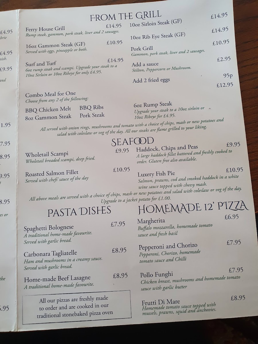 The Ferry House Menu, located at 27 Front St, Gainsborough DN21 3DJ, United Kingdom, offers a delightful dining experience that combines local flavors with a charming atmosphere. As someone who has visited this establishment, I can confidently say that the menu is thoughtfully crafted to cater to a variety of tastes, whether you're in the mood for a hearty meal or a lighter bite.